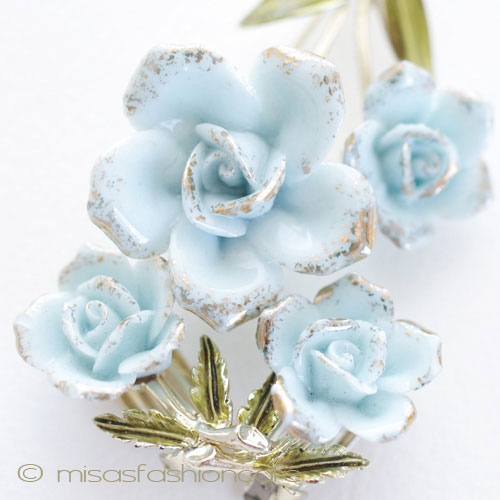 デザイン: ポーセリン製水色&ゴールドのローズ。