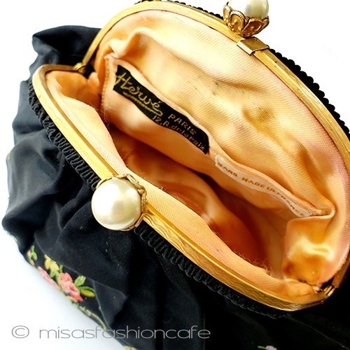 アンティークバッグ 仏製 お花刺繍とパール金具