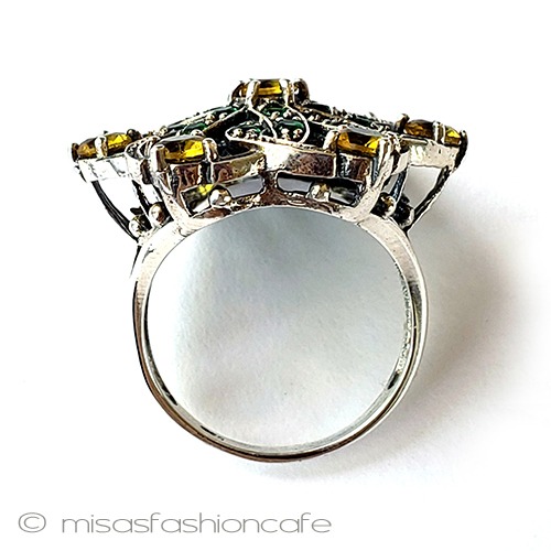 デザイン: エメラルド&シトリン装飾透かしフラワー。