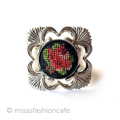アンティークリング指輪 プチポアン刺繍ローズ花