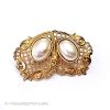 商品: イヤリング。 ブランド:MiriamHaskell ミリアムハスケル 刻印あり。 デザイン:パール装飾透かしロシアンGoldフローラル。 サイズ: 縦3.4cm。 状態: 大変良いエクセレント・コンディションです。