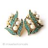 商品: イヤリング。 デザイン: パールの花とターコイズRS装飾の金葉。 サイズ: 2.5cm。 状態: 大変綺麗なエクセレントコンディションです。