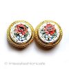 商品: イヤリング。 デザイン:フラワーブーケ花柄ガラス・モザイク装飾。 サイズ: 2.1cm。 状態:大変綺麗なエクセレントコンディションです。