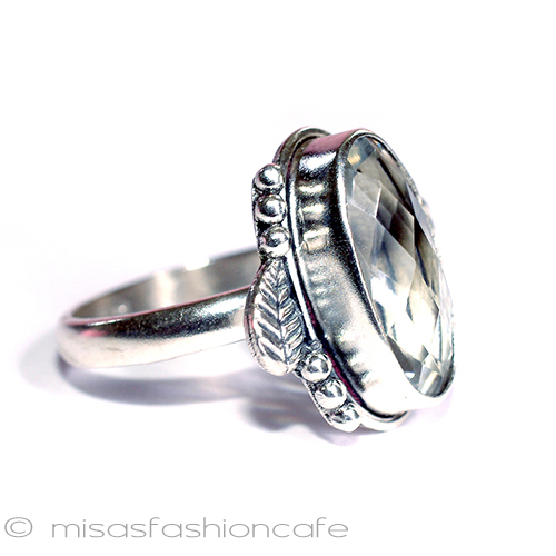 デザイン: 銀の葉装飾ファセテッドカット・トパーズ。