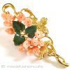 珊瑚・翡翠の花ブローチ
