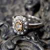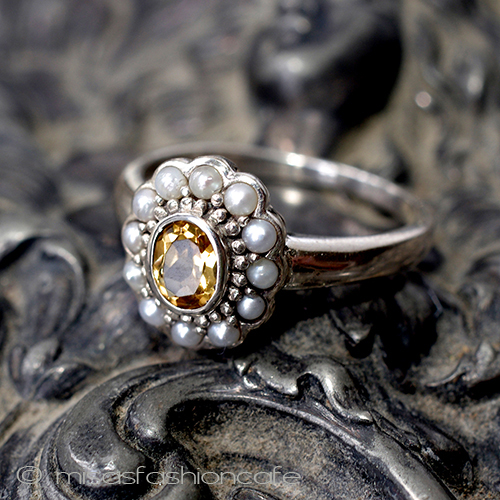 デザイン: 12粒の真珠とシトリンのフローラル銀装飾。