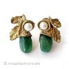 デザイン:真珠とグリーンのクオーツ装飾金葉どんぐり。