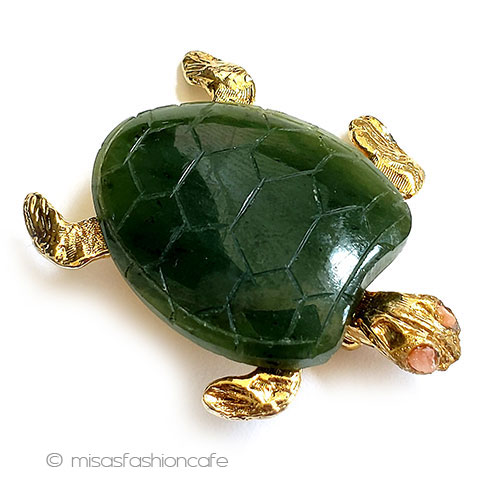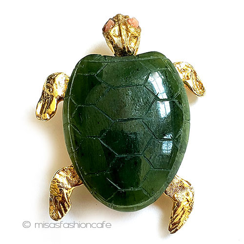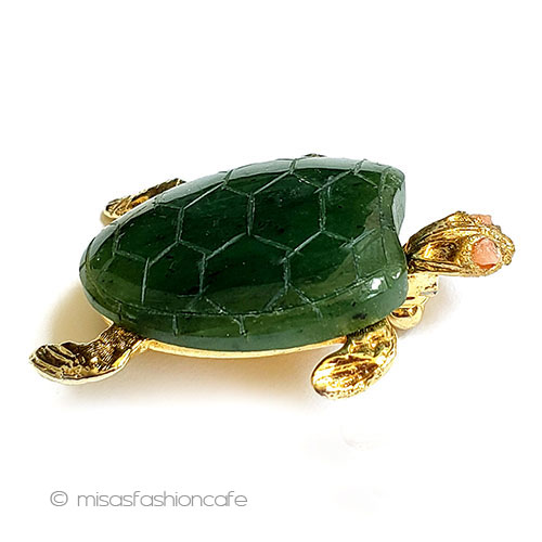 デザイン:翡翠ボディーにコーラル珊瑚の目装飾・金の亀。