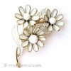 商品: ブローチ。 ブランド: Trifari トリファリ(刻印あり)。 デザイン:ミルクガラス製デイジーの花&エナメルの葉。 サイズ: 7.2cm。 状態: とても良いコンディションです。